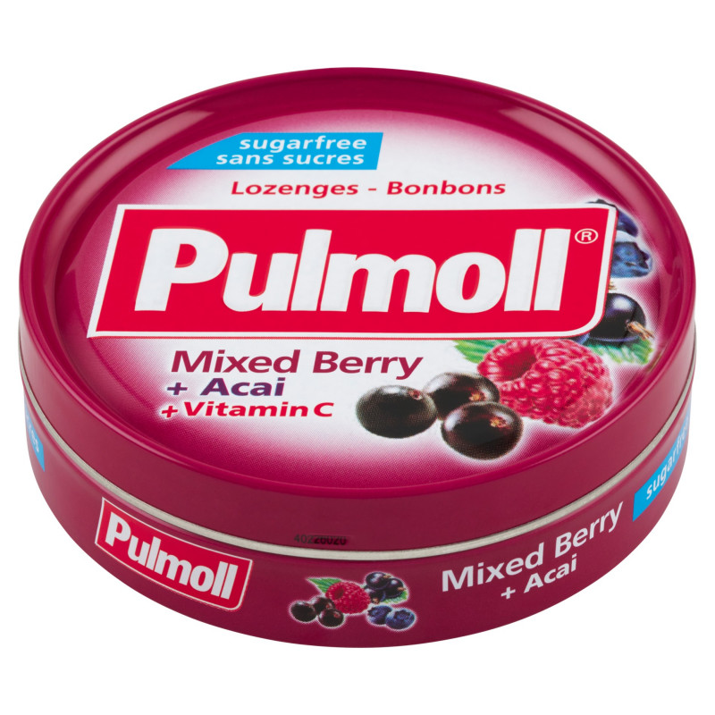 Pastylki do ssania o smaku owoców jagodowych z dodatkiem witaminy C. Zawiera substancje słodzące.
