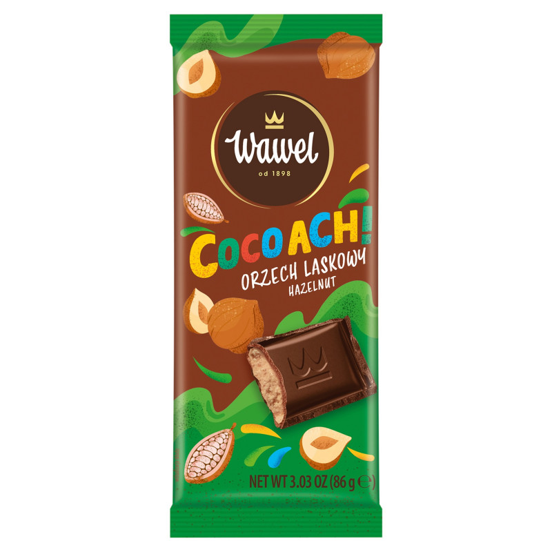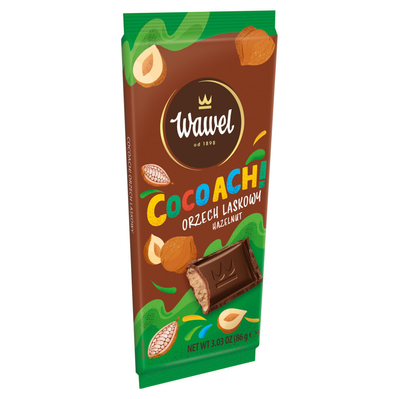 Tabliczka kakaowa z nadzieniem (47 %) z orzechów laskowych.
