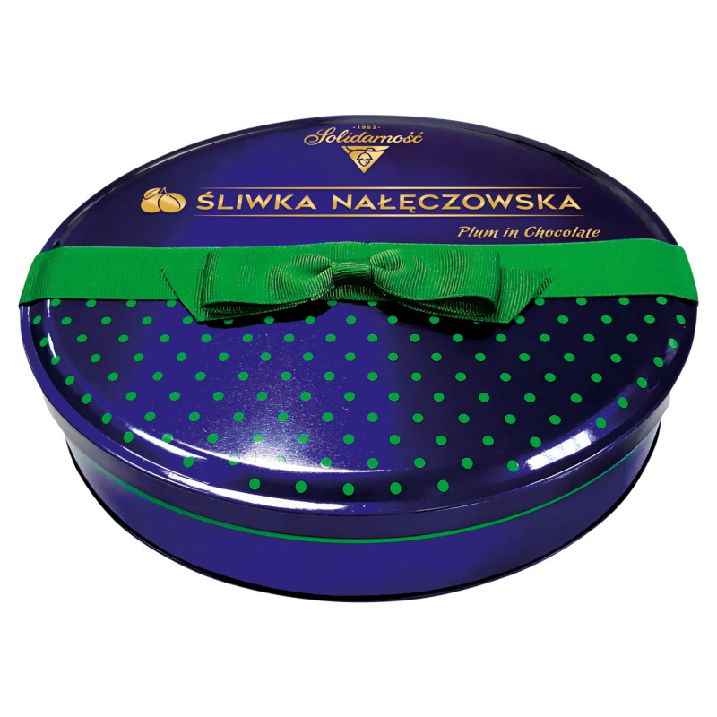 Śliwki kandyzowane w masie kakaowej w czekoladzie (40 %).