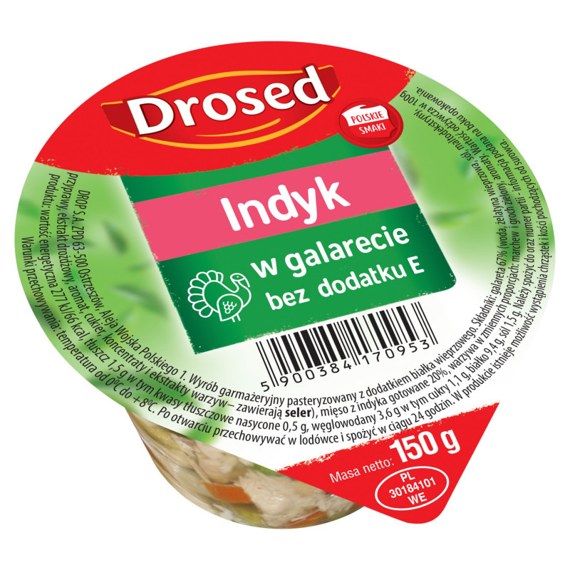 galaretka 67 % (woda, żelatyna wieprzowa, sól, maltodekstryny, przyprawy, ekstrakt drożdżowy, aromat, cukier, koncentraty i ekstrakty warzyw - zawierają seler)