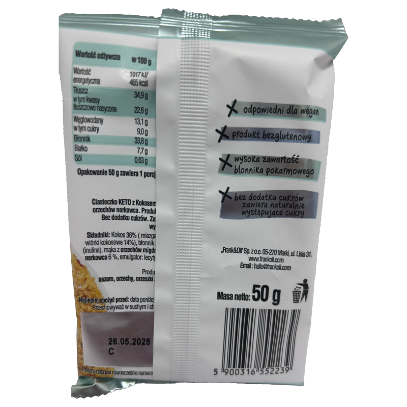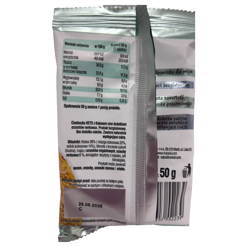 Frank & Oli Keto miękkie ciasteczko kokos & orzech nerkowca 50g