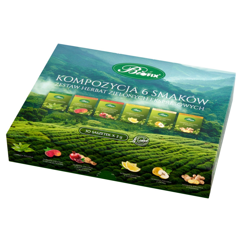 Kompozycja 6 smaków - zestaw herbat zielonych ekspresowych.