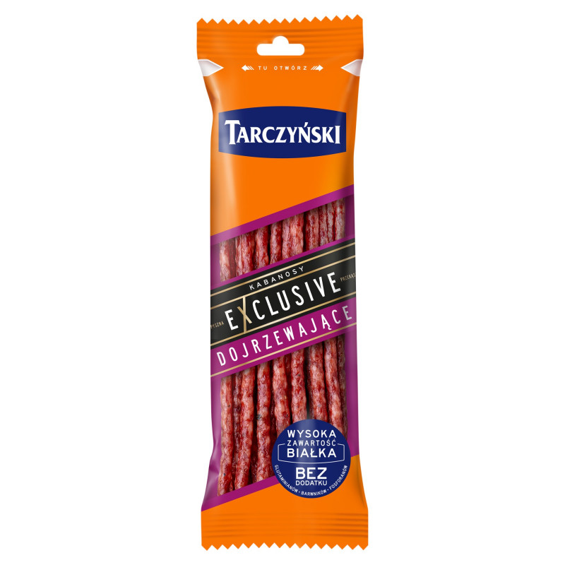 Kabanosy Exclusive dojrzewające. Wyrób wieprzowy, drobno rozdrobniony, surowy, dojrzewający.