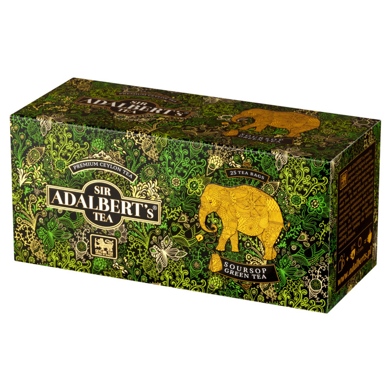 Herbata zielona o smaku flaszowca miękkociernistego, w saszetkach.