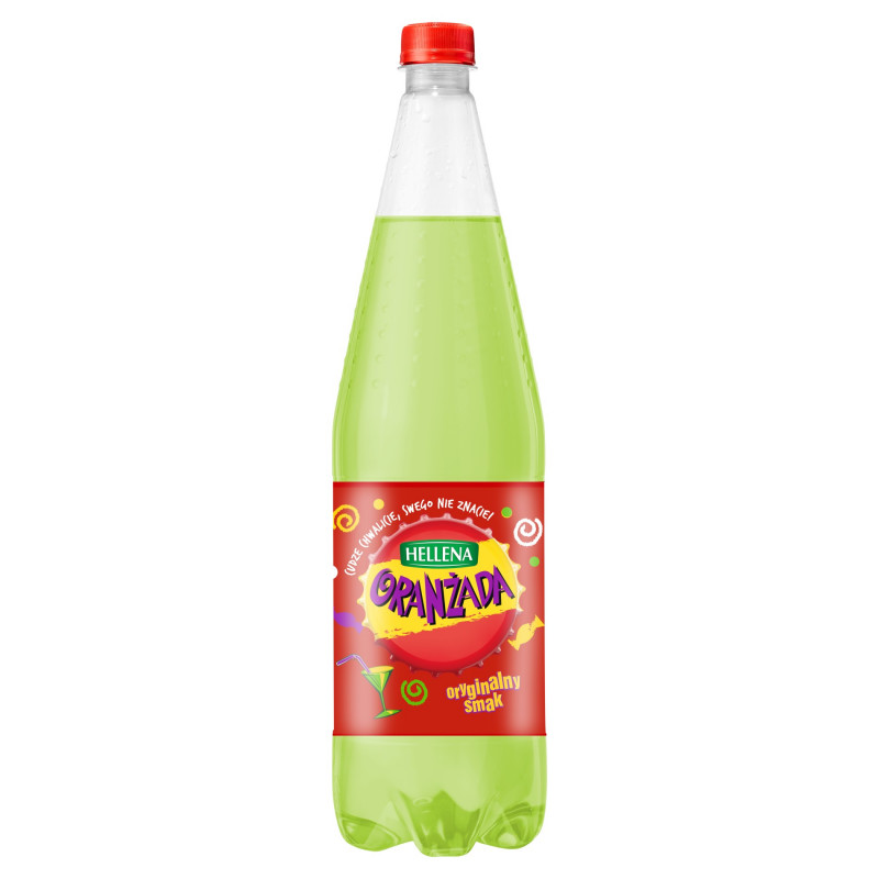 Napój owocowy, gazowany oranżada zielona. Zawiera cukier i substancje słodzące. Pasteryzowany.